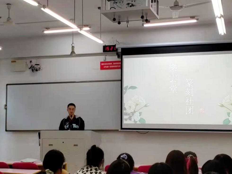 为了增进樂雲堂篆刻社团成员之间的交流,进一步提高社团凝聚力,使新成员更加深入地了解樂雲堂,樂雲堂篆刻社团于11月19日,在教学科研楼828教室举行了新生见面会。樂雲堂社团新老成员参加了此次会议。
