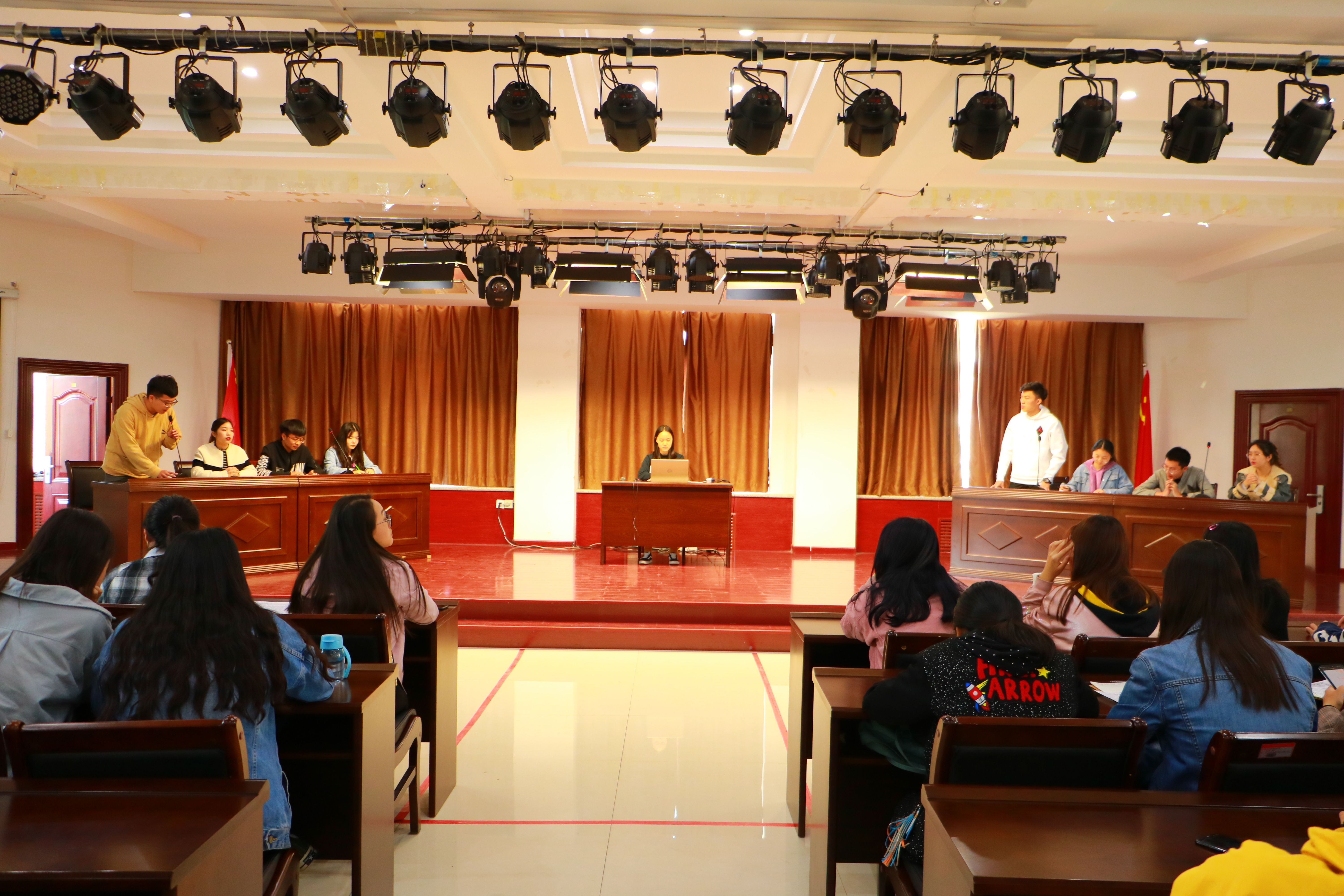 辩论赛分三场举行,分别是“天灾与人祸哪个更可怕”、“是否应该让孩子相信童话”、“去向哪里和与谁同行哪个更重要”。各队队员镇定从容,侃侃而谈。良好的风范、出色的口才、敏捷的思维令场下观众为之折服,掌声不断。赛后,评委对各位辩手表现逐一点评。