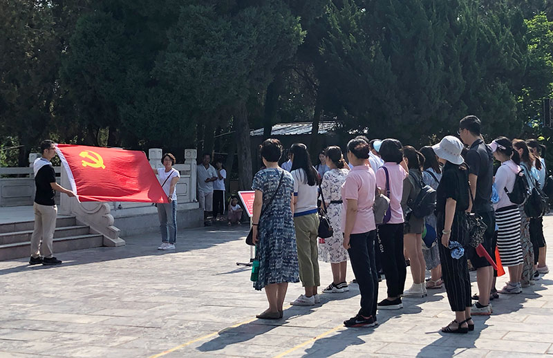 尔后党员们举行了重温入党誓词,大家在烈士墓前面向党旗庄严宣誓,决心在思想上、工作上发扬“亲民爱民、艰苦奋斗、科学求实、迎难而上、无私奉献”的焦裕禄精神,以实际行动告慰先烈英魂。